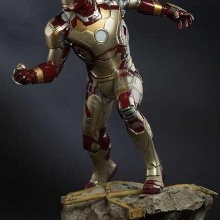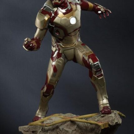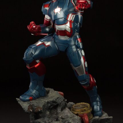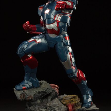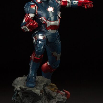 Iron Patriot Maket’in piyasaya sürülmesinin ardından Sideshow Collectibles, Stark’ın en yeni ve en harika zırhıyla ekran doğruluğunda nihai temsilini üretmek için her Iron Man filminin arkasındaki özel FX ustaları olan Legacy Effects ile işbirliği yaptı. Temalı bir taban üzerinde 20 inç boyunda olan esprili kahraman, en ünlü rollerinden birinde Robert Downey Jr.’ın dikkate değer bir benzerliğini içeren, değiştirilebilir maskeli ve maskesiz portrelerle harekete geçiyor. Çok parlak boya uygulaması ve ışıklandırmayla tamamlandı. gözlerindeki, göğsündeki ve iticilerindeki özelliklerle bu dinamik heykel, dünyayı Mandarin tehdidinden kurtarmak için yola çıkan ‘kutudaki adam’ın her ayrıntısını yakalıyor.